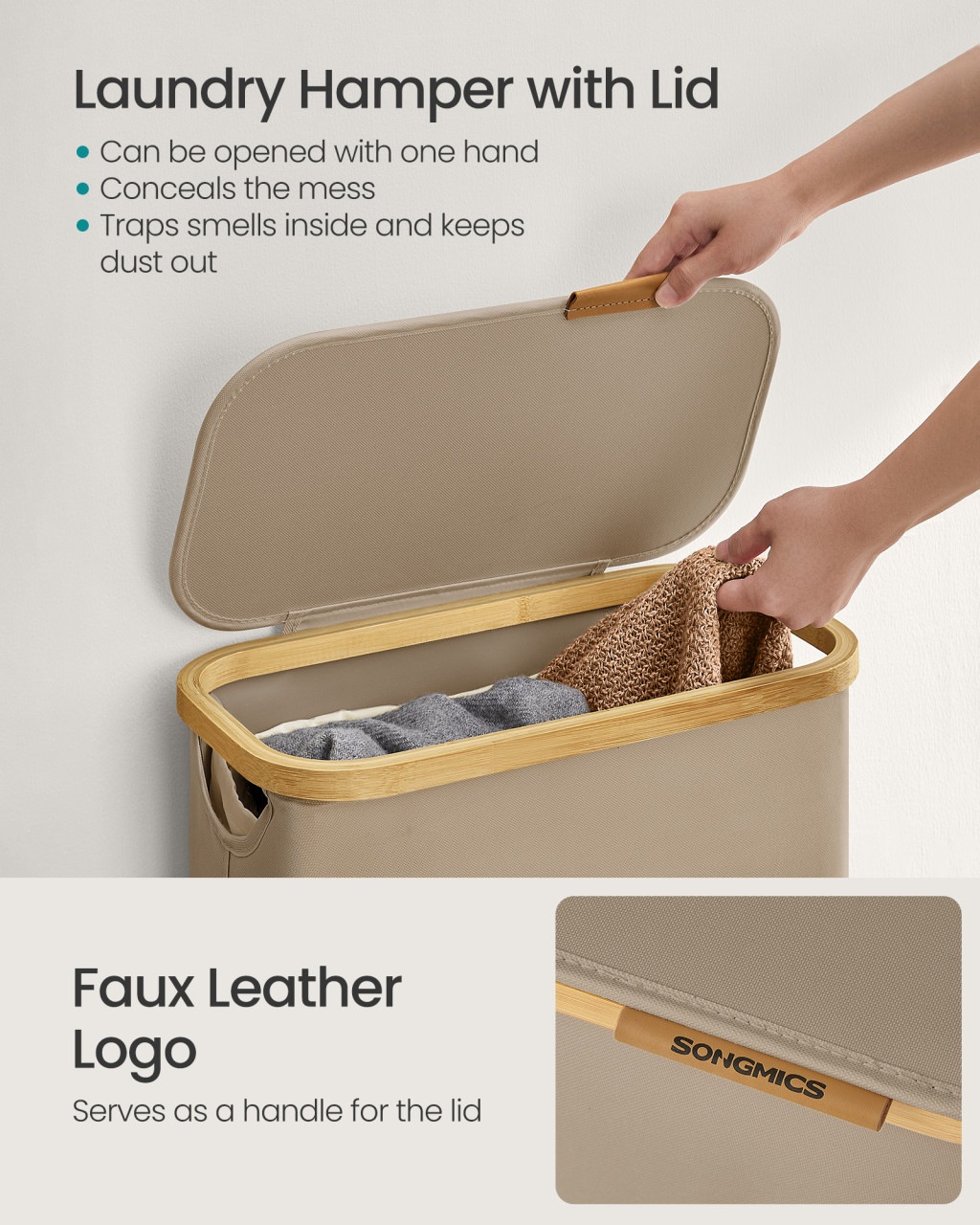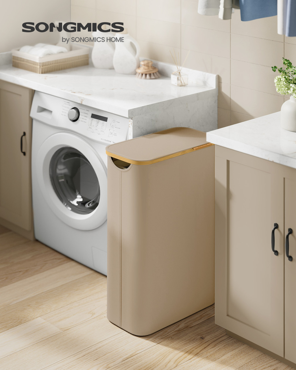 Coșul de rufe subțire de 65 de litri este soluția perfectă pentru apartamente mici și spălătorii compacte. Culoarea maro nisipos și designul modern aduc eleganță băii sau spălătoriei. Produsul are numeroase avantaje care facilitează viața de zi cu zi: