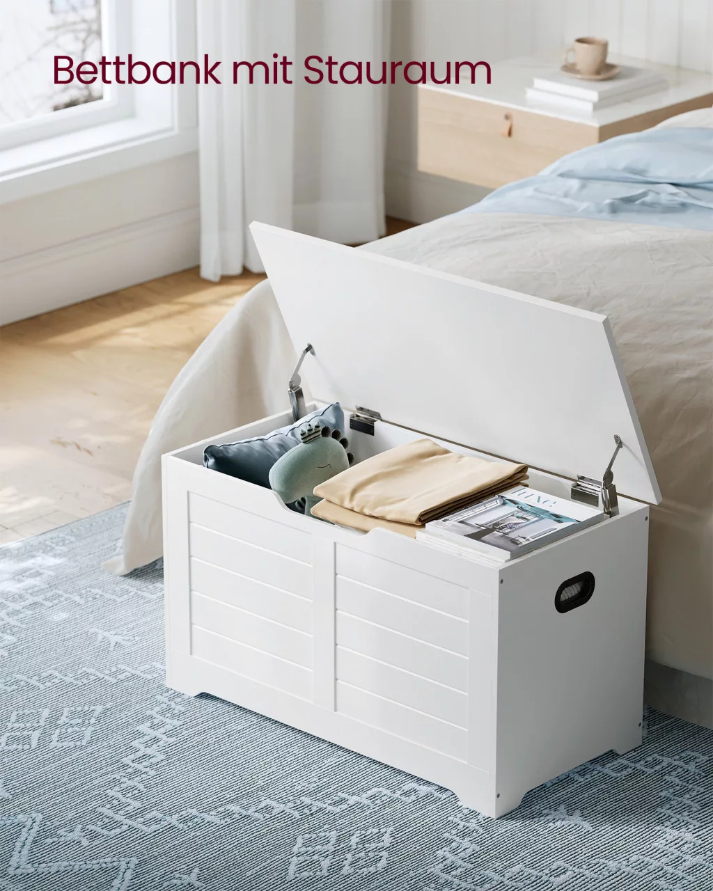 Cutie de depozitare, bancă pentru pantofi cu deschidere, cu 2 balamale de siguranță, albă
