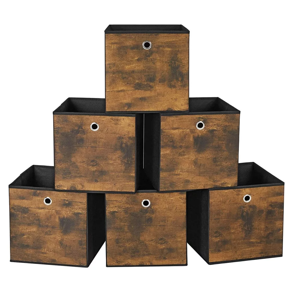 Cutii de depozitare pliabile 6 buc, rustice maro și negru 30x30x30cm